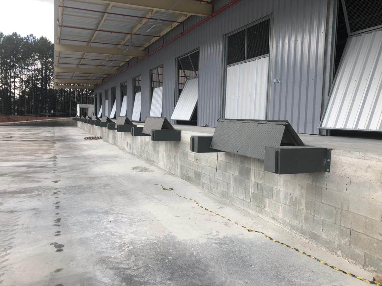 - Instalação: equipamento com chassi fixado a doca de concreto através de sistema de parafusos com bucha de aço (tipo parabolt);