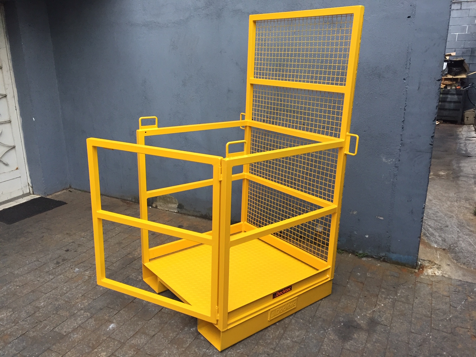 Para utilização sobre os garfos da empilhadeira, para manutenção em altura. | Capacidade de Carga distribuída de 250 kgf. | Construído em tubos e perfis de aço soldados e com tela para proteção na parte traseira | Dimensões: base com 1000x1000mm, guarda-corpo com 1100 mm e altura total de 1800 mm | Portinhola pivotada para facilitar o acesso do operador | Ancoramento para o cinto de segurança | Corrente para a fixação de segurança na torre da empilhadeira | Pintura em esmalte sintético na cor amarela | Atende a NR12 e NR35