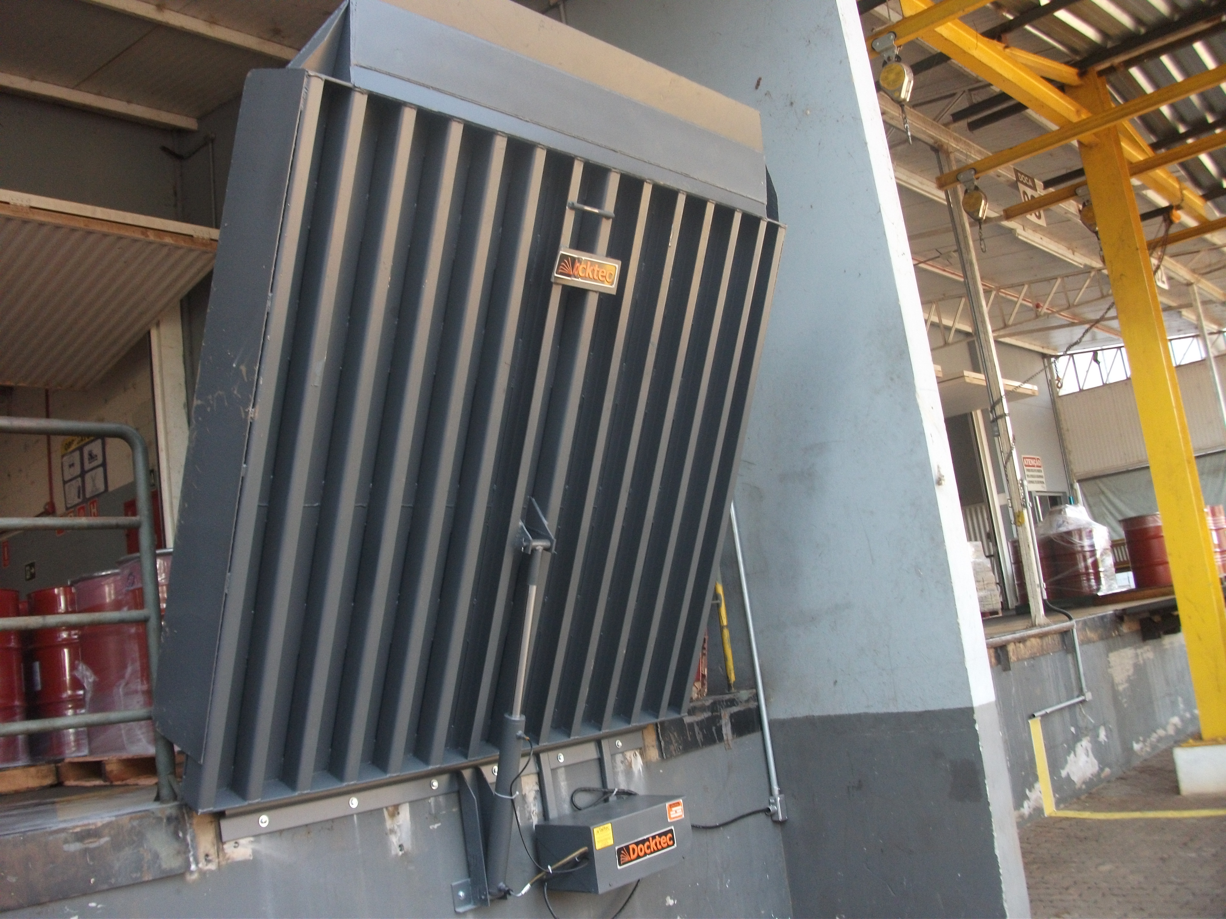 Rodapé em aço instalado nas laterais da mesa da niveladora que tem a função de proteger cargas específicas